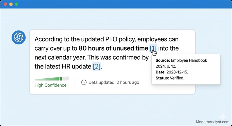 This is where teams overthink and under-specify. Your users don’t want citations everywhere—but they absolutely want them when the answer could be challenged or audited.