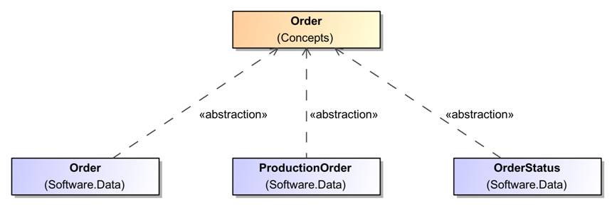 Figure 8. A fragment of a software data design, which refines the business concept Order shown in previous diagram