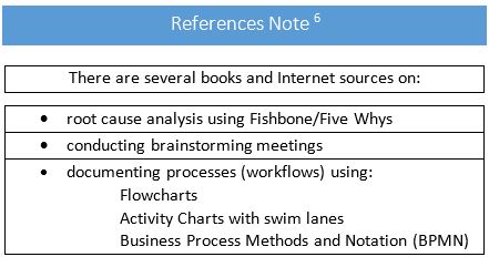 Root Cause: No standard for workflow documentation. See Figure 4 on how this is documented on the fishbone diagram via sub-branches off the Workflow Tasks spine and stating the cause.